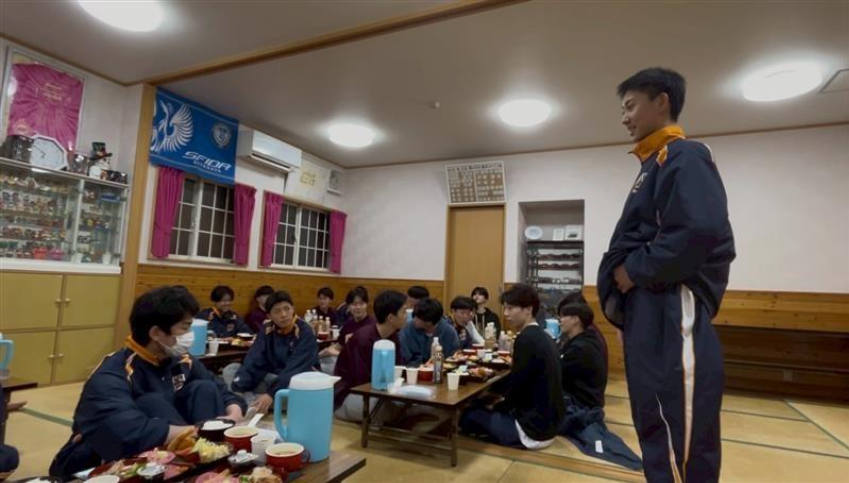 合宿2日目は、朝の散歩で海岸に行くことから始まりました。海岸で眠たい頭をリフレッシュさせてから、朝食ではご飯茶碗3杯を目標に食べました。しかし、1年生の食べっぷりが甘く、次のチームが心配になりました。たくさん食べてフィジカルを強くしてほしいです!!!
