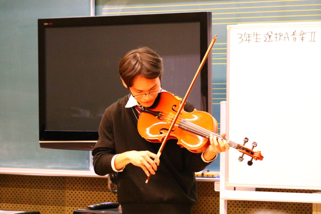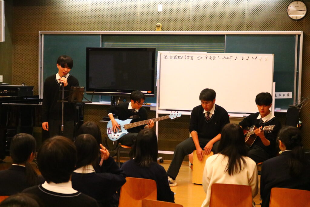 11月27日(木)の5・6時間目。3年生の「音楽Ⅱ」選択者による、プチ演奏会が開催されました。