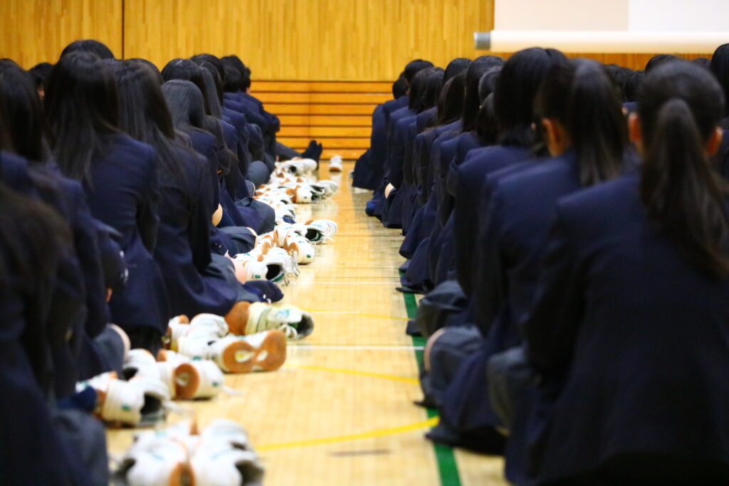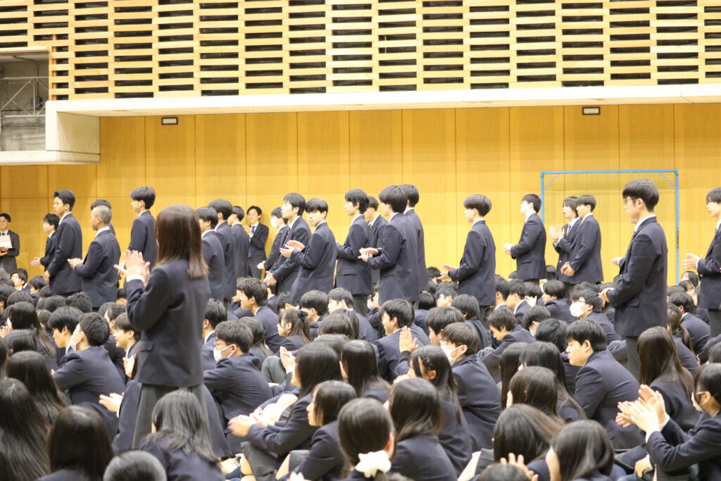 毎年のことながら、生徒たちが学年・クラスごとに整列すると列の隙間が目立ち、3年生の卒業をあらためて実感しますね。