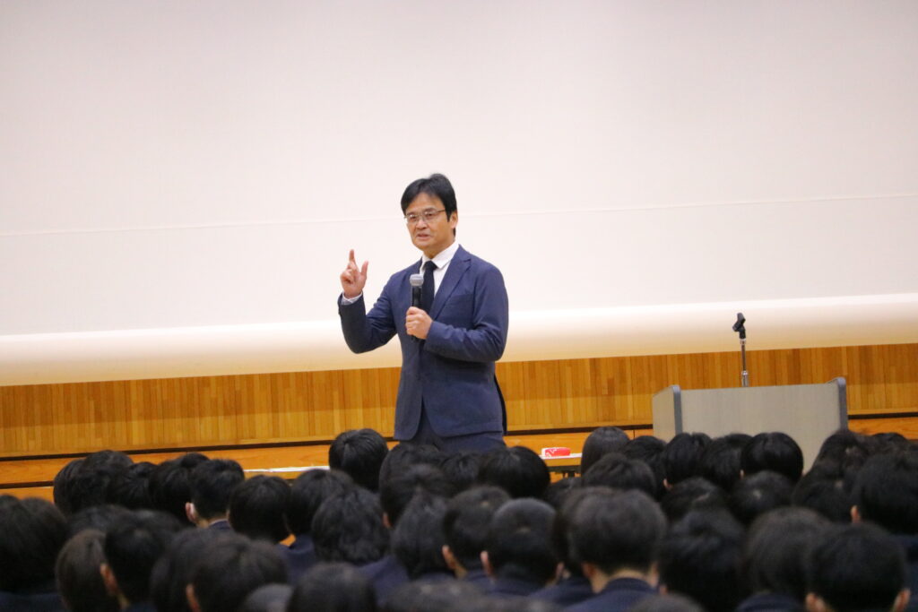 この日の校長講話は「付加価値」がテーマ。