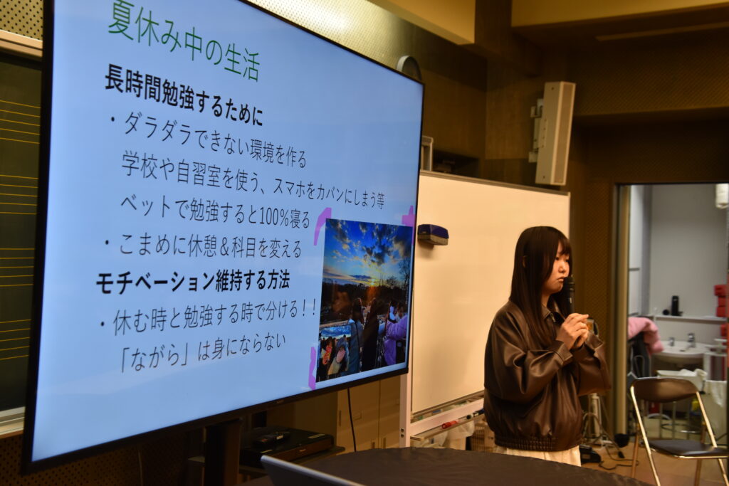 講師の3名は自身の体験をもとに新2・3年生に対して今のうちにやっておいた方がよいことや、お勧めのテキスト、YouTubeなどを紹介してくれました。