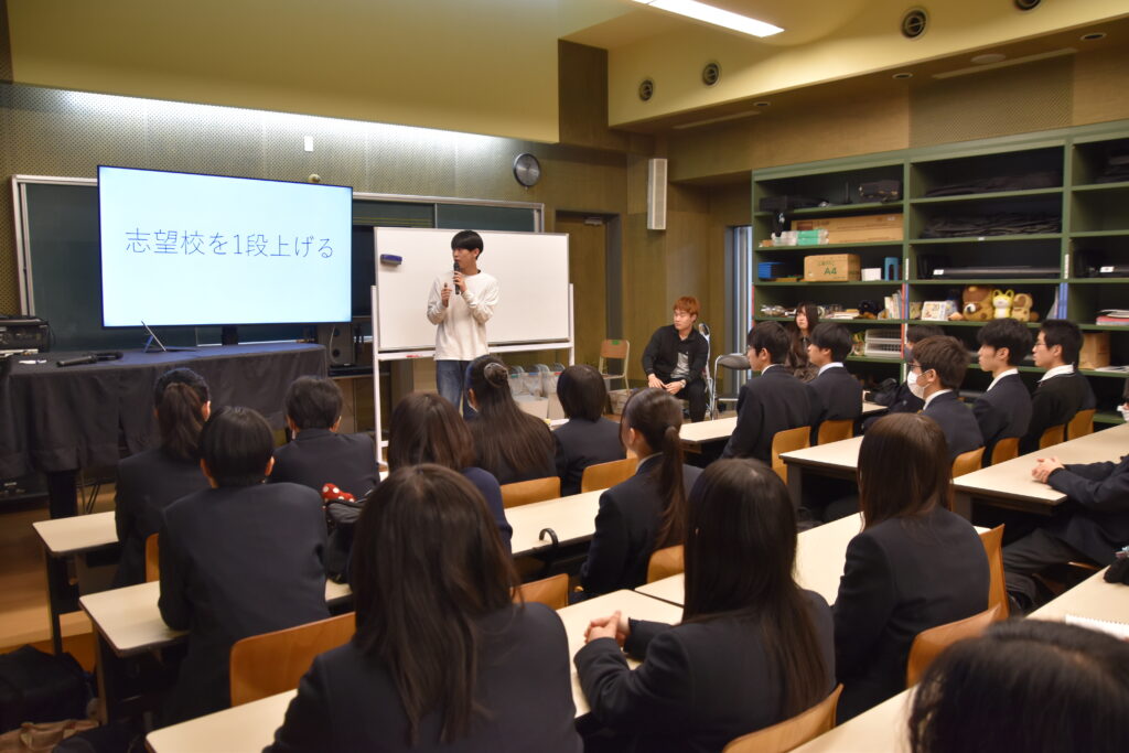 3月26日(木)、本校を卒業した3名を招いて、特別進学コースの新2・3年生を対象に卒業生講演会を行いました。