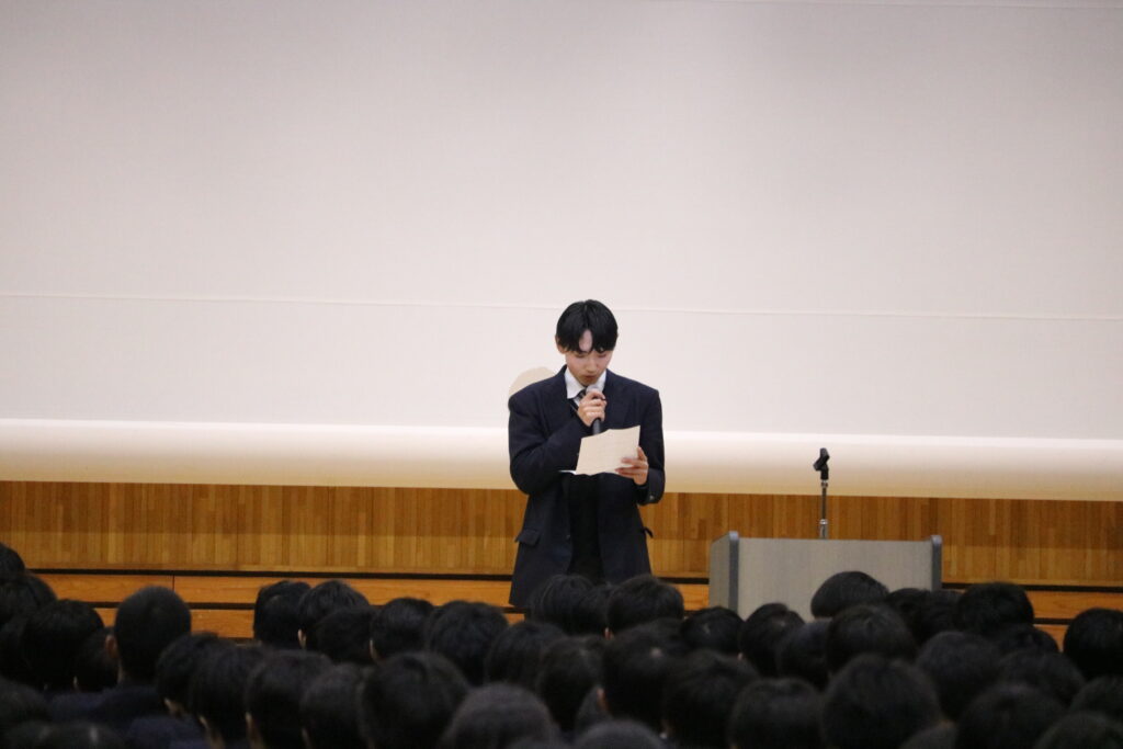 このあとは、春休み中の部活動の大会などについて表彰ほか、登下校時の身なりに関する生活指導部からのお知らせや、生徒会役員選挙に向けた選挙管理委員会からの告知もありました。