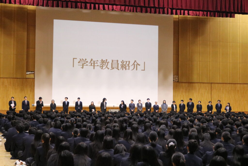 それぞれ「2年生」・「3年生」になり、新しいクラスメイトと顔を合わせたばかりの生徒たちは体育館に集まってもまだちょっとソワソワ。