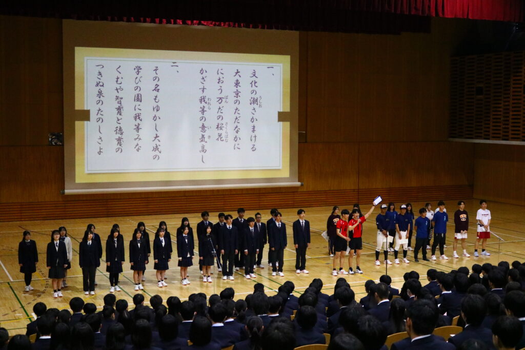 特に1年生のガイダンスでは、2,3年生にリードしてもらって校歌を練習する微笑ましい場面もありました。
